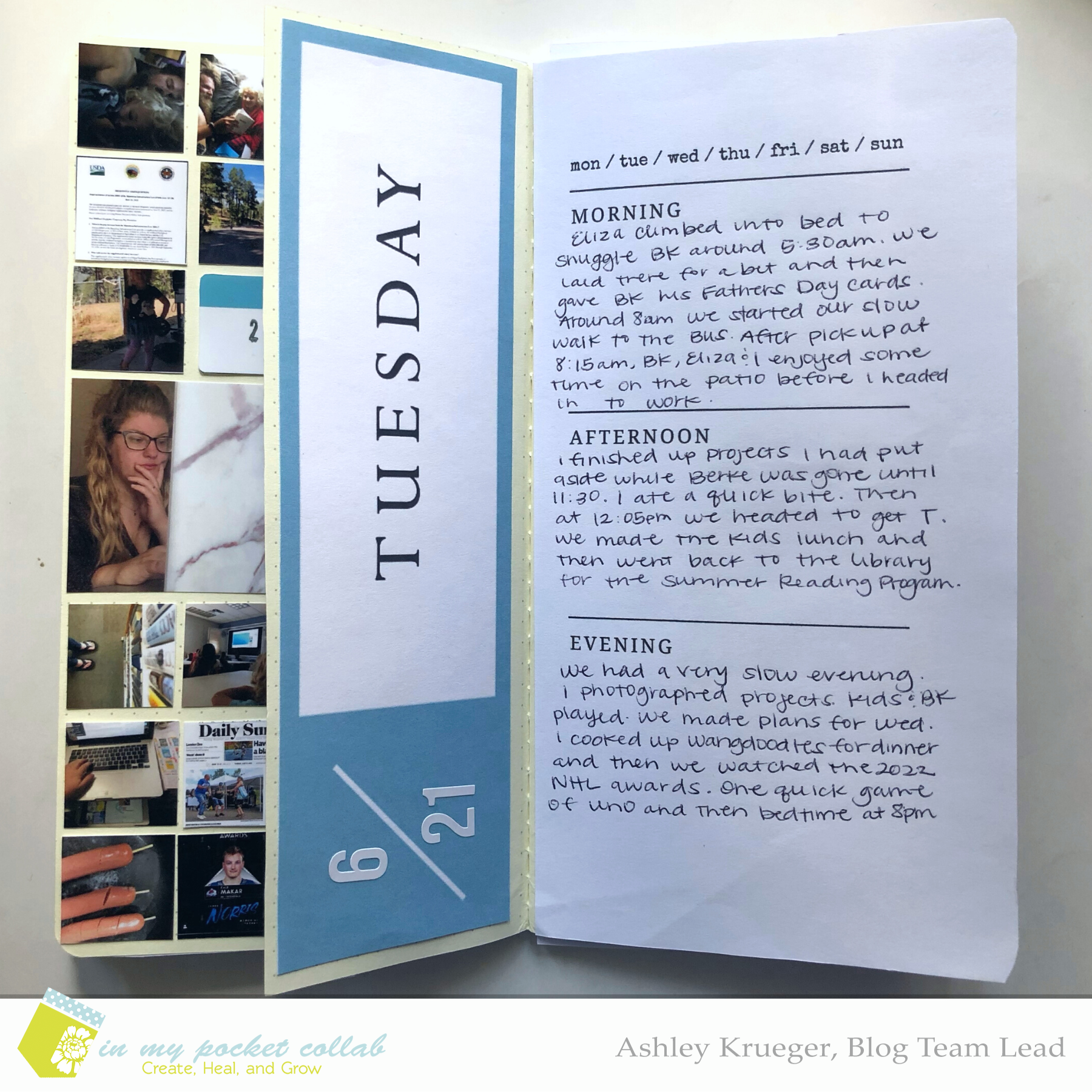 Hey friends! It is Ashley and today I wanted to share how I am documenting my 2022 Week In The Life project. I was inspired by the days of the week labels designed by Paper Hum for the IMP Go To Techniques Collab Kit. Each of those day labels was a different color and coordinated with other elements and papers throughout the kit. It was a perfect fit!