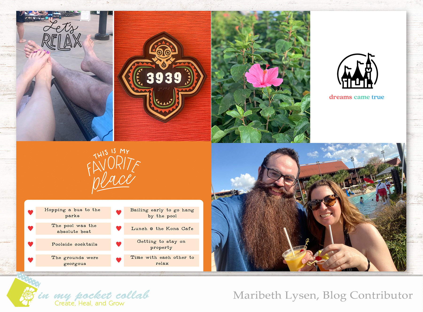 I’ve always been a Disney fan and love going to the parks when I get a chance. Growing up in Washington state, we visited Disneyland in California a couple of times when I was a kid, but I was an adult before I made it Disney World in Florida. I love both locations and will happily go to either one anytime I get the chance. The new In My Pocket Collab Theme Parks 03 class, live now on the blog, gave me the magical nudge I needed to get started on my travel album from our last Disney trip to Disney World.