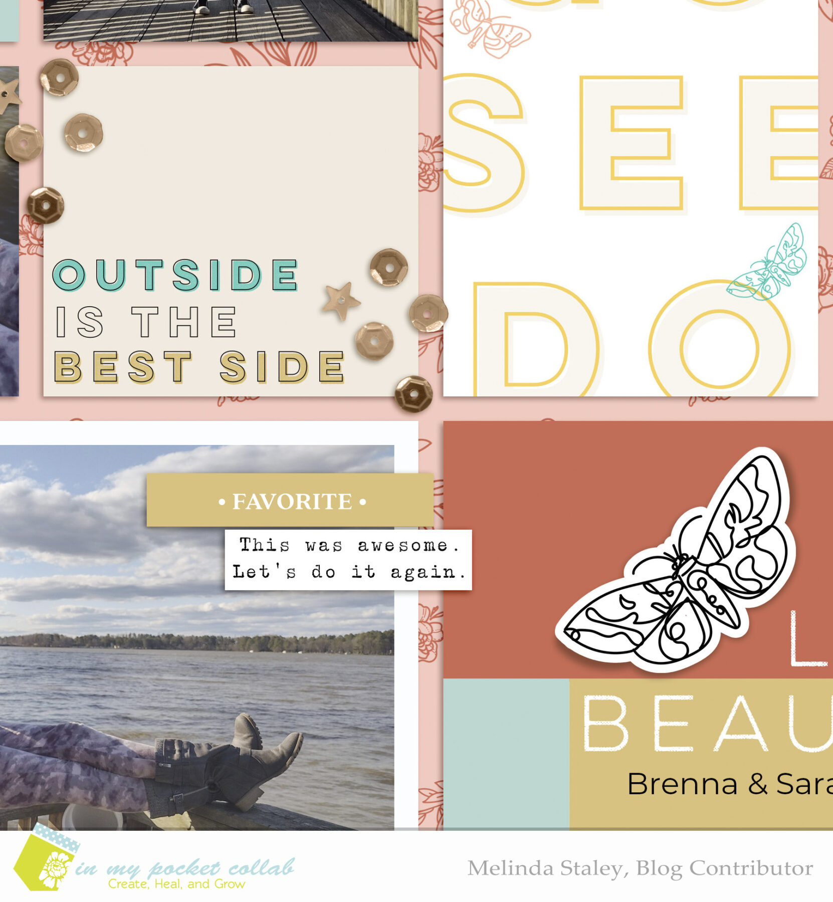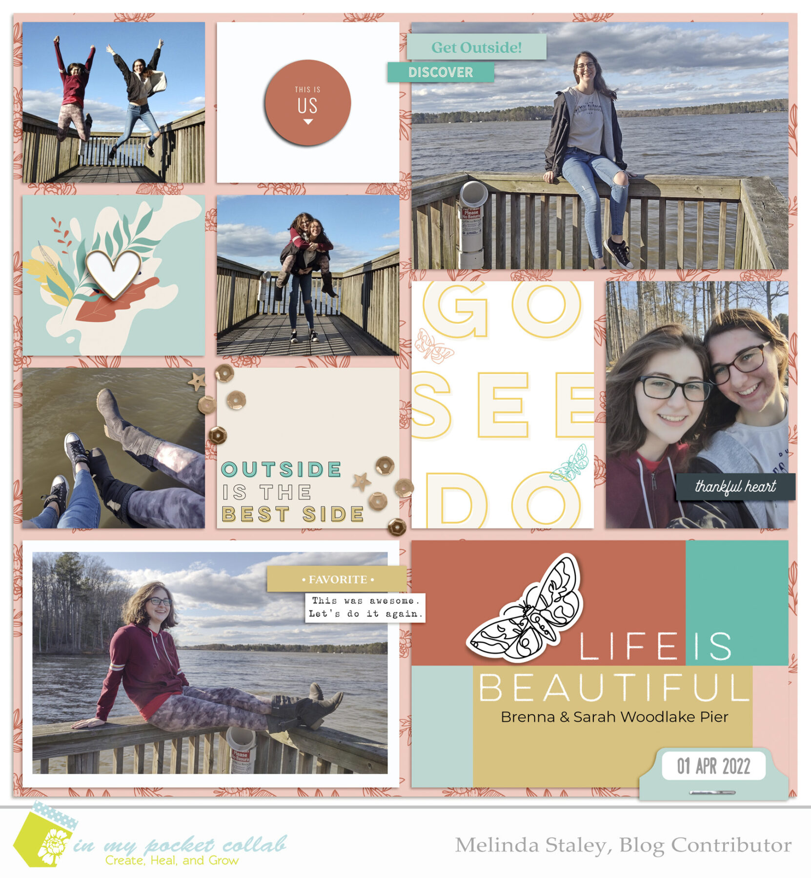 This month’s new release by The Practical Scrapper, Discover Life, was perfect for recording it. The colors matched nicely and there was just the right amount of outdoor phrases and ones that appreciated the time spent in this moment of sisterly togetherness.