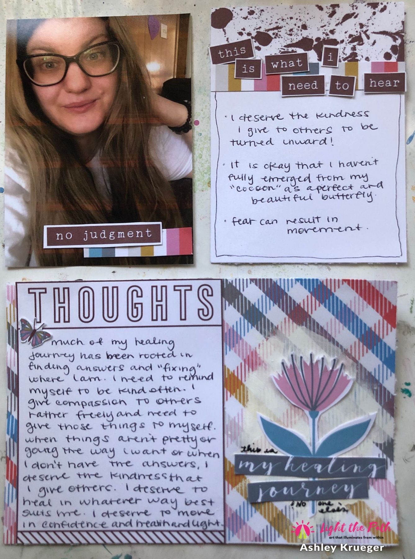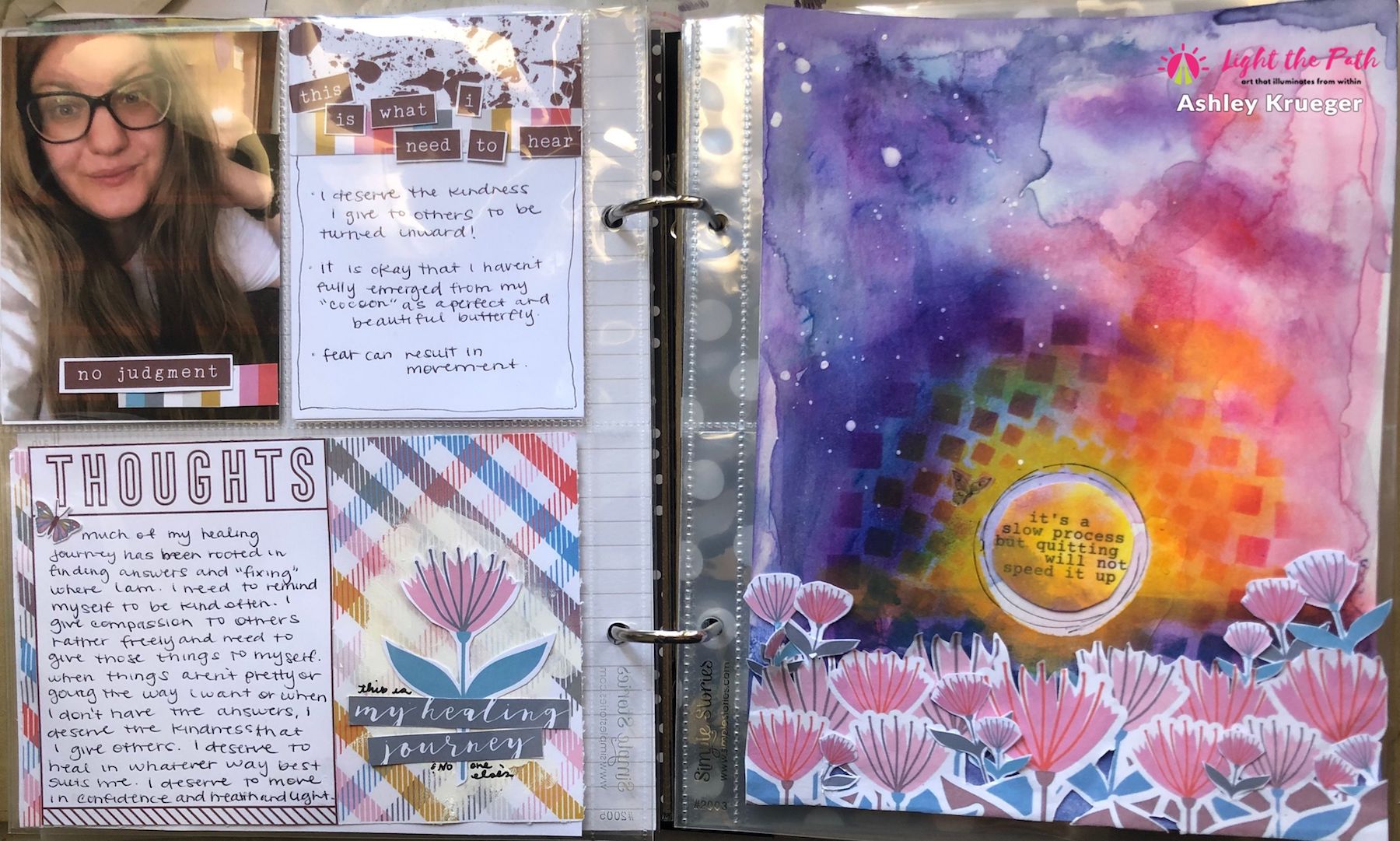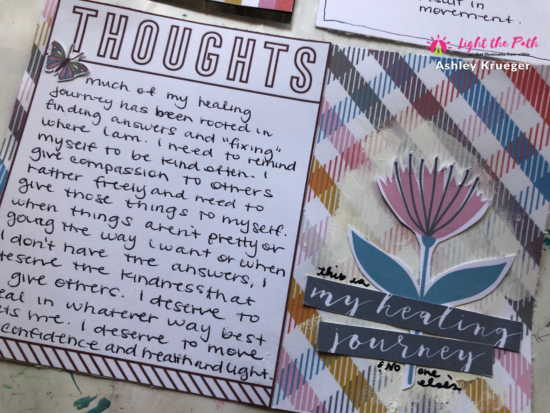 Happy May friends, Ashley here! Today, I am sharing my pocket page layout for the May prompts in the Light the Path workshop. This month we are highlighting the things we need to hear to keep us in a good space. For this project, my focus was the things I need to remember in regards to my healing journey.