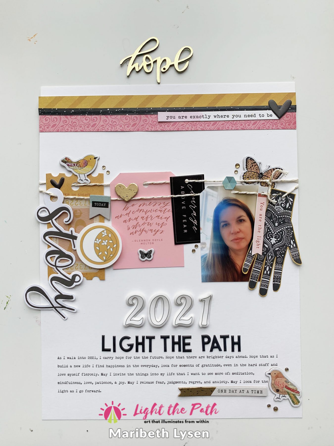 I’m honored to be working with Theresa on her 2021 Light the Path Design team! 2020 was a wild year and I’m hoping for more ease, more connection, and to go deeper with my documenting in 2021. Light the Path (LTP) is the perfect workshop to help me meet those goals. LTP is a community full of fellow Lightbearers who are all working together to support and encourage each other on a path of self discovery, healing, and authenticity through art and writing as we engage with our ourselves.